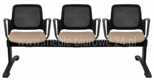 Nowoczesne i modułowe ławki Aspen BS Arm (2, 3, 4-osobowe) z czarnymi kubełkami i przewiewnymi oparciami z siatki Runner. Personalizacja tapicerki siedzisk i wybór koloru stelaża (czarny/szary) sprawiają, że doskonale sprawdzą się w biurach, szkołach i obiektach publicznych.