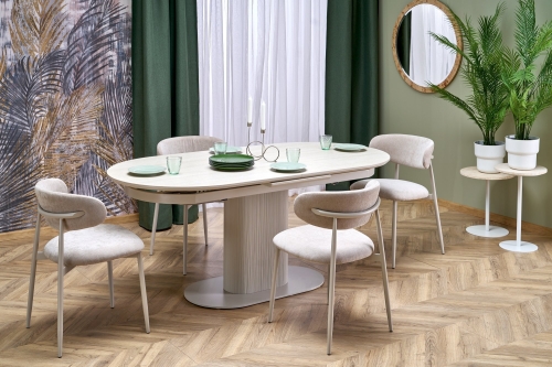FALONE stół rozkładany blat - jasny trawertyn, noga - kaszmir (3p=1szt)