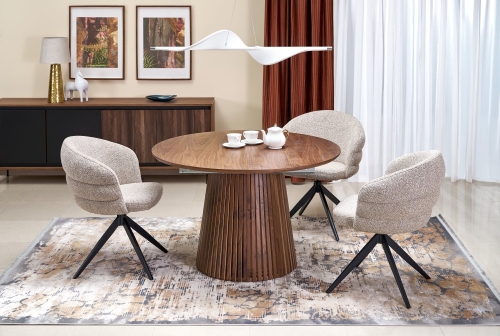 Stół okrągły NICOLAS to doskonały wybór dla osób, które pragną wprowadzić do swojego wnętrza odrobinę elegancji i naturalnego uroku. Dzięki średnicy 120 cm i wysokości 77 cm, stół idealnie wkomponuje się w przestrzenie zarówno małe, jak i większe, tworząc przytulne miejsce do spotkań z rodziną i przyjaciółmi. Wykonany z wysokiej jakości MDF z okleiną naturalną i drewna litego, zapewnia nie tylko estetyczny wygląd, ale także trwałość, która przetrwa wiele lat użytkowania.więcej »