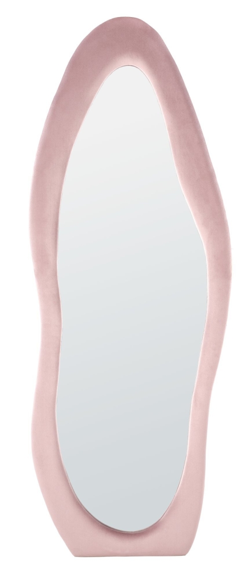 lustro stojące lub ścienne, wymiary: 160/60 cm, materiał: lustro / tkanina velvet / płyta MDF, kolor: jasny różowy