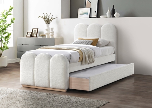 łóżko z wysuwanym dolnym materacem, materiał: tkanina / drewno lite, kolor: kremowy ,* łóżko bez materaca, w opcji materac POLARIS 90 lub SYRIUSZ 90
