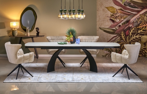 VITRUS stół rozkładany, blat - jasny trawertyn, nogi - czarny (2p=1szt)