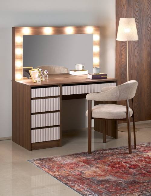 toaletka, wymiary: 120/55/140 cm, materiał: lustro / płyta meblowa laminowana / MDF laminowany, oświetlenie LED, kolor: kaszmir / orzech