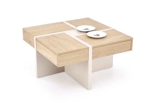 wymiary: 80/80/43 cm, materiał: płyta meblowa okleinowana, kolor: dąb cremona - kaszmir