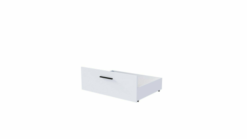 Szuflada, w modnym kolorze białym, jest wykonana z trwałej płyty meblowej laminowanej, co gwarantuje jej stabilność i odporność na codzienne użytkowanie. Dzięki zamontowanym kółkom, możesz swobodnie wysuwać i wsuwać szufladę, zachowując porządek w sypialni.