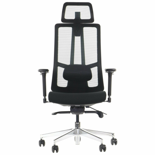 Oparcie tapicerowane wytrzymałą tkaniną siatkową (mesh) zapewnia optymalną cyrkulację powietrza, zapobiegając przegrzaniu. Funkcja regulacji wysokości oparcia (zakres 6 cm pozwala precyzyjnie ustawić punkty podparcia.