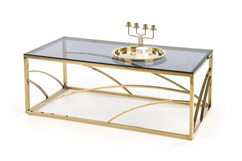 UNIVERSE ława, stelaż - złoty, szkło - dymiony
