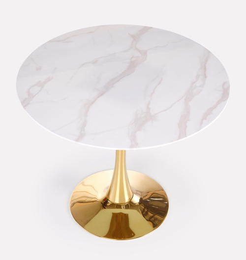 CASEMIRO stół fi90/75 cm, blat - biały marmur, noga - złoty