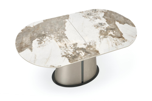 | Zaprezentowany stół rozkładany ROBINSON to doskonałe połączenie elegancji i funkcjonalności, idealny do nowoczesnych wnętrz. Jego wyjątkowy design z beżowym marmurowym blatem oraz cappuccino i czarnymi akcentami sprawia, że stanowi on znakomity punkt centralny w każdym pomieszczeniu. Dodatkowo, możliwość rozkładania pozwala na dostosowanie jego wielkości do indywidualnych potrzeb – sprawdzi się zarówno podczas codziennych posiłków, jak i większych przyjęć rodzinnych czy przyjaciół. - Wymiary: 160-200 cm długości / 90 cm szerokości / 76 cm wysokości