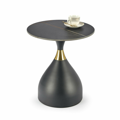 Lawa SCALITA charakteryzuje się unikalnym kształtem, który przyciąga wzrok i doskonale komponuje się z różnymi dodatkami. Jej czarna powierzchnia, dekorowana subtelnym złotym akcentem, sprawia, że jest zarówno praktyczna, jak i estetyczna. Doskonała do umieszczenia przy sofie lub fotelu, stanowi idealne miejsce na napój, książkę czy dekoracje.