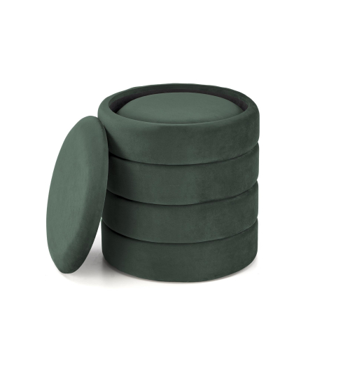 wymiary: 40/44 cm oraz 33/39 cm; zestaw 2 puf z funkcją pojemnika, materiał: tkanina - velvet, kolor c.zielony