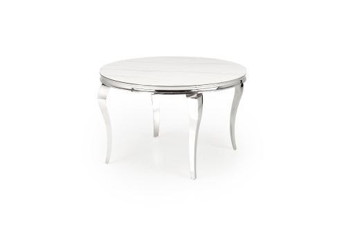 REGINALD stół okrągły 120/76 cm, blat - biały marmur, nogi - srebrny