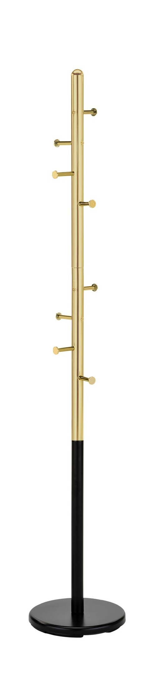 Wieszak W68 to wyjątkowy element, który doskonale wpisuje się w nowoczesne wnętrza, łącząc elegancję z funkcjonalnością. Jego unikalna konstrukcja wyróżnia się połączeniem stali chromowanej oraz malowanej proszkowo, co gwarantuje nie tylko estetykę, ale i trwałość na długie lata. Kolorystyka black and gold nadaje mu wyrafinowanego, luksusowego charakteru, idealnego do przedpokoju, biura czy modnej przestrzeni komercyjnej.