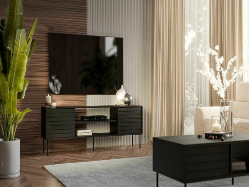 CORTINA szafka RTV 180 EF  czarny/czarny ( 1 szt.=1 p. ), z możliwością montażu kominka - kupowany oddzielnie