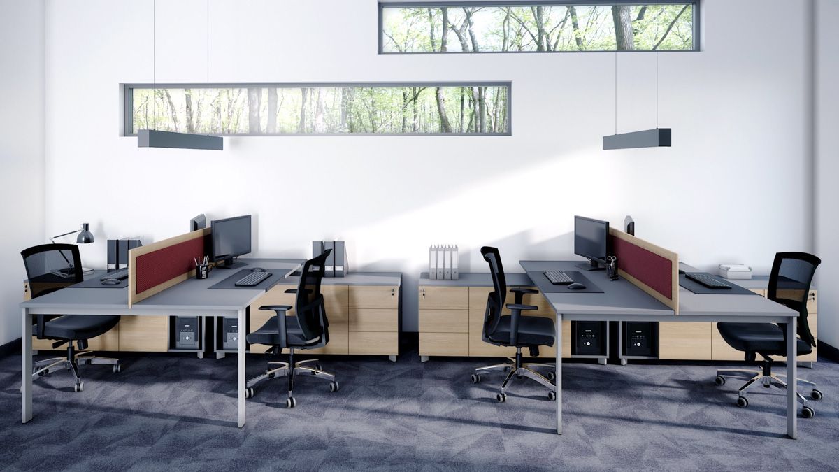 Biurko EVENT opis Blat wykonany z płyty melaminowanej obustronnie o klasie higieniczności E1, o grubości 25 mm. Kolorystyka blatu według próbnika płyt melaminowanych.Krawędź blatu wykończona PCV o grubości 2 mm.