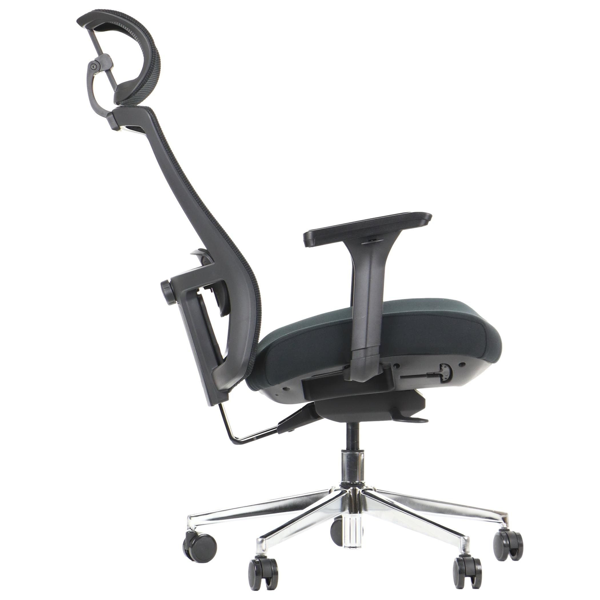 | Wymiary | wysokość bez zagłówka: 103 - 113 cm wysokość siedziska: 46-56 cm szerokość siedziska: 53 cm głębokość siedziska (mierzona od podparcia lędźwiowego) 46 cm podstawa: fi 68 cm |